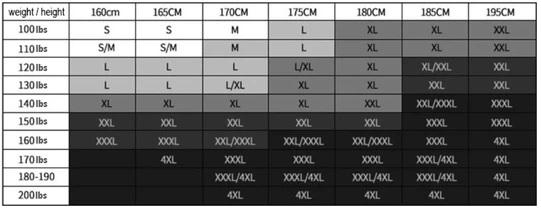 SIZE CHART:
